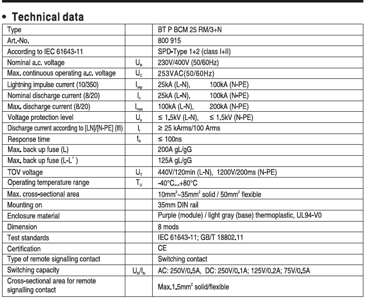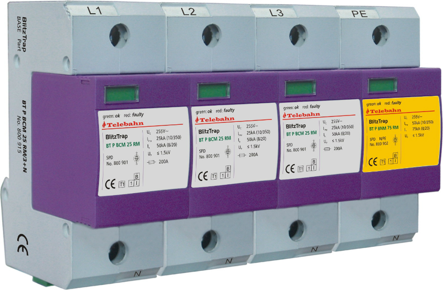 For installation at LPZ 0A-1 or high, protecting low voltage equipment against lightning and surge damages. Specially designed for TT/TN-S system (3+1 circuit). Applied in SPD Class Ⅰ+Ⅱ(Class B+C) for various power supply system of lightning current surge protection. Designed according to GB 18802.1/IEC 61643-1.