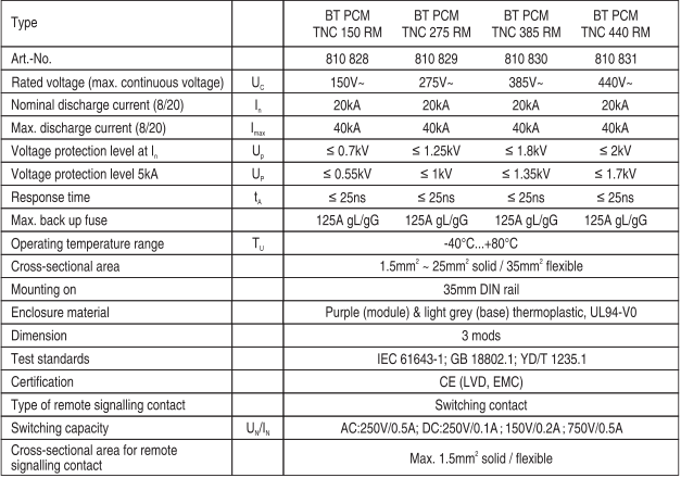 For installation at LPZ 0B-1 or higher, protecting low voltage equipment from surge damages. Applied in modular SPD Class II (Class C) for TNC power supply system. Designed according to IEC 61643-1/GB 18802.1.
