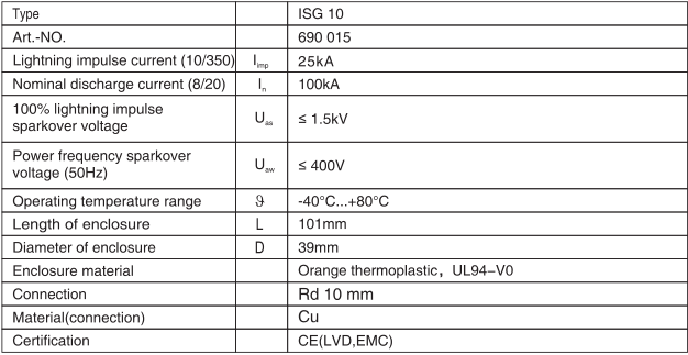 For lightning equipotential bonding, especially for connection of separated earthing systems.