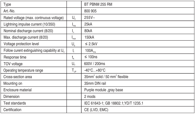 For installation at LPZ 0A-1 or high, protecting low voltage equipment against lightning and surge damages, mainly used in power supply system such as power distribution-room, distribution-cabinet and other important power supply system. Applied in N-PE SPD Class Ⅰ (Class B) for various power supply system of lightning current surge protection. Designed according to GB 18802.1/IEC 61643-1.